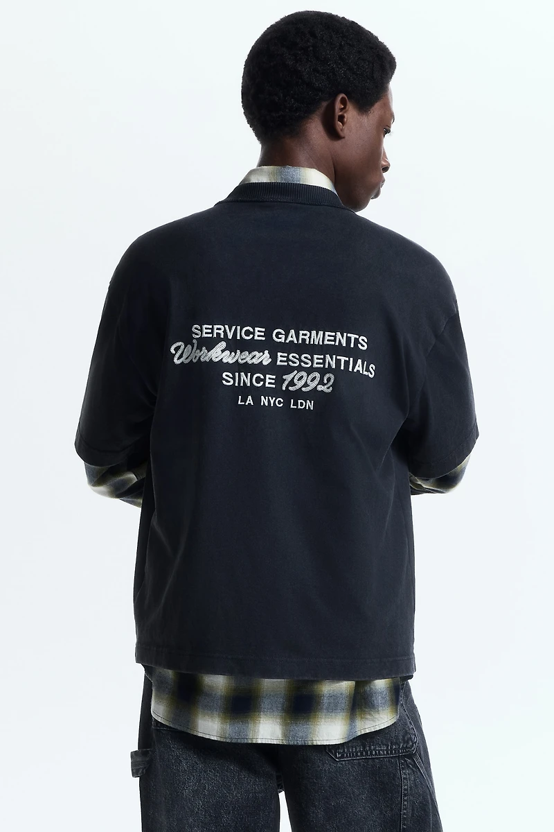 - Description: Black/white, Service Garments, Workwear Essentials, since 1992, LA, NYC, LDN