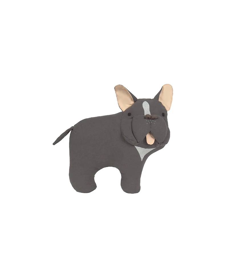 Meet Jimmy! Your perfect little companion. This handcrafted, funny cushion is shaped like a real French Bulldog, made from soft cotton fabric with a light grey print. It features pointy ears that stand up, a tongue sticking out, and a strongly shaped nose made of cord, just like a real Frenchie! A playful and lovable cushion that brings smiles to any space.