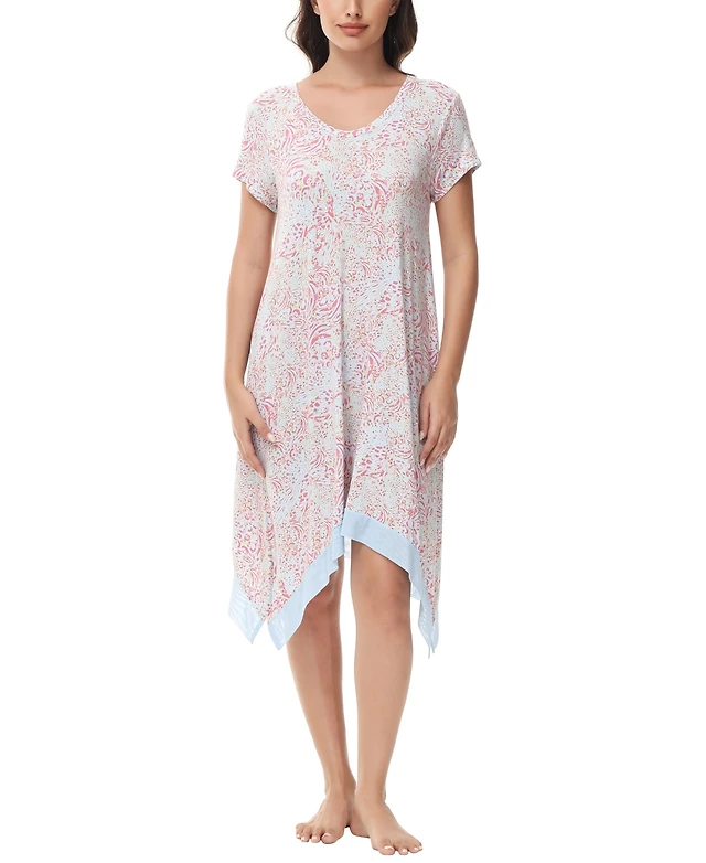 iCollection Women's Silky Soft Short Printed Chemise Nightgown