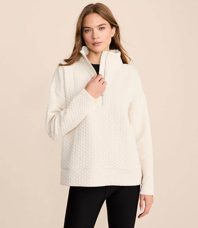 Lou & Grey Quilted Cable Jacquard Half Zip Top
