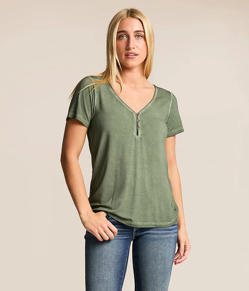 Washed v-neck henley Bust measures 35" on size small Body length 24" on size small