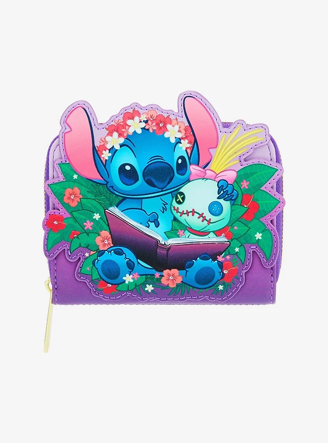 Loungefly Disney Lilo & Stitch Scrump & Stitch Reading Floral Small Zip Wallet - BoxLunch Exclusive