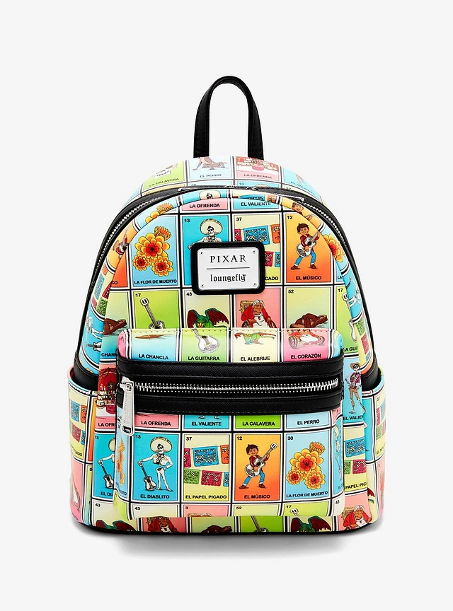Loungefly Disney Pixar Coco Character Lotería Cards Allover Print Mini Backpack - BoxLunch Exclusive