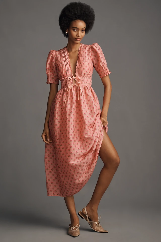 BHLDN Sophie Linen Fit & Flare Midi Dress