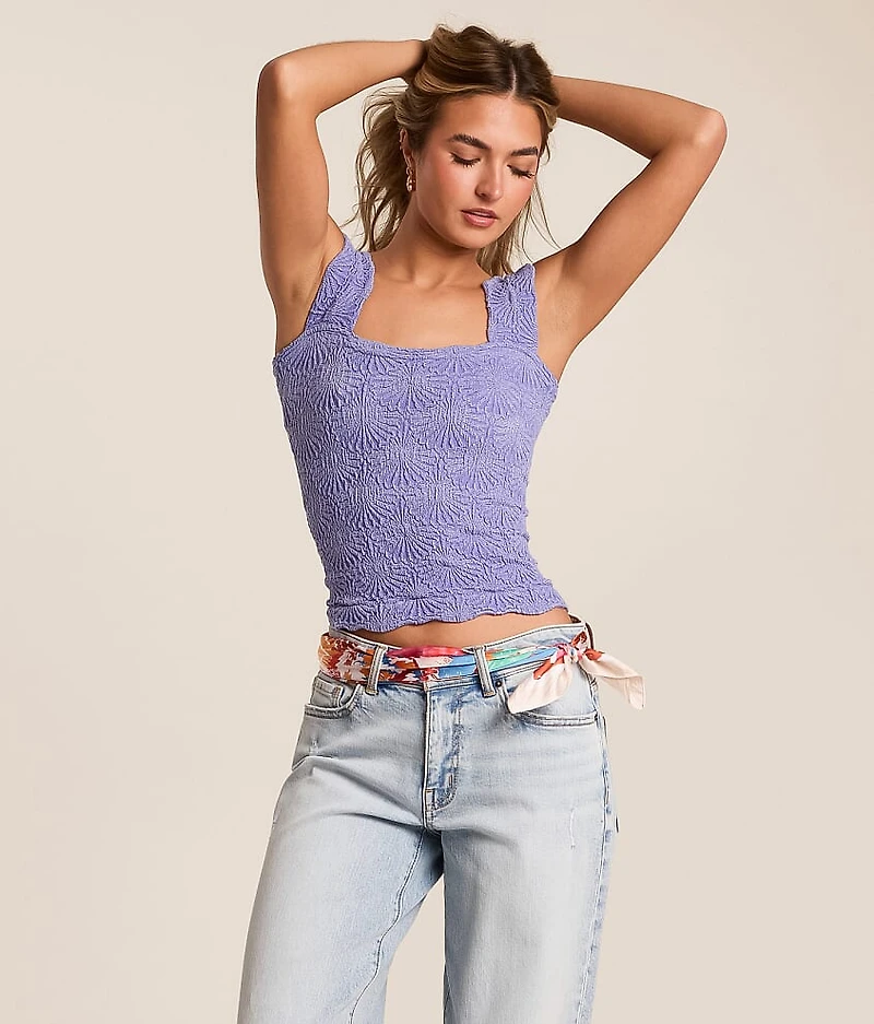 Smocked jacquard Modal blend square neck tank Stretch fabric Bust measures 22" on size XS/S Body length 17 1/2" on size XS/S