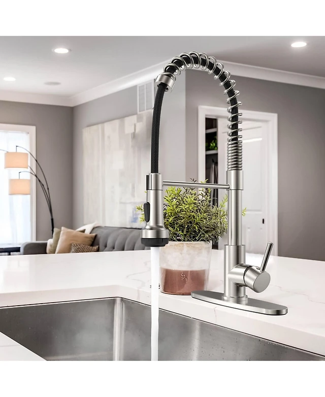 Lovmor 4-Function Brushed Nickel Pull Down Single Handle Kitchen Sink Faucet