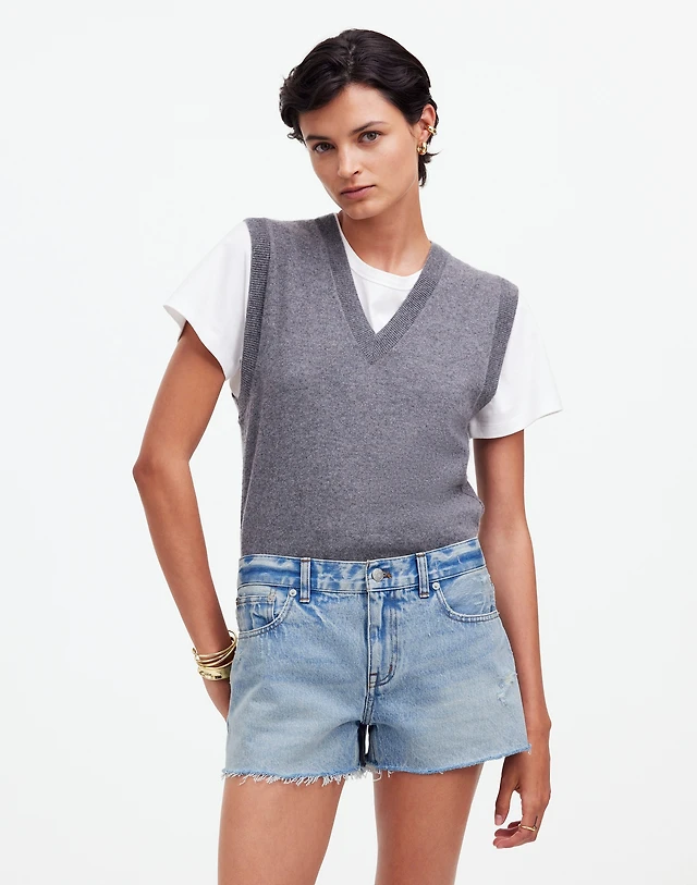 Low-Rise Boyfriend Shorts in Kalamazoo Wash: Raw-Hem Edition