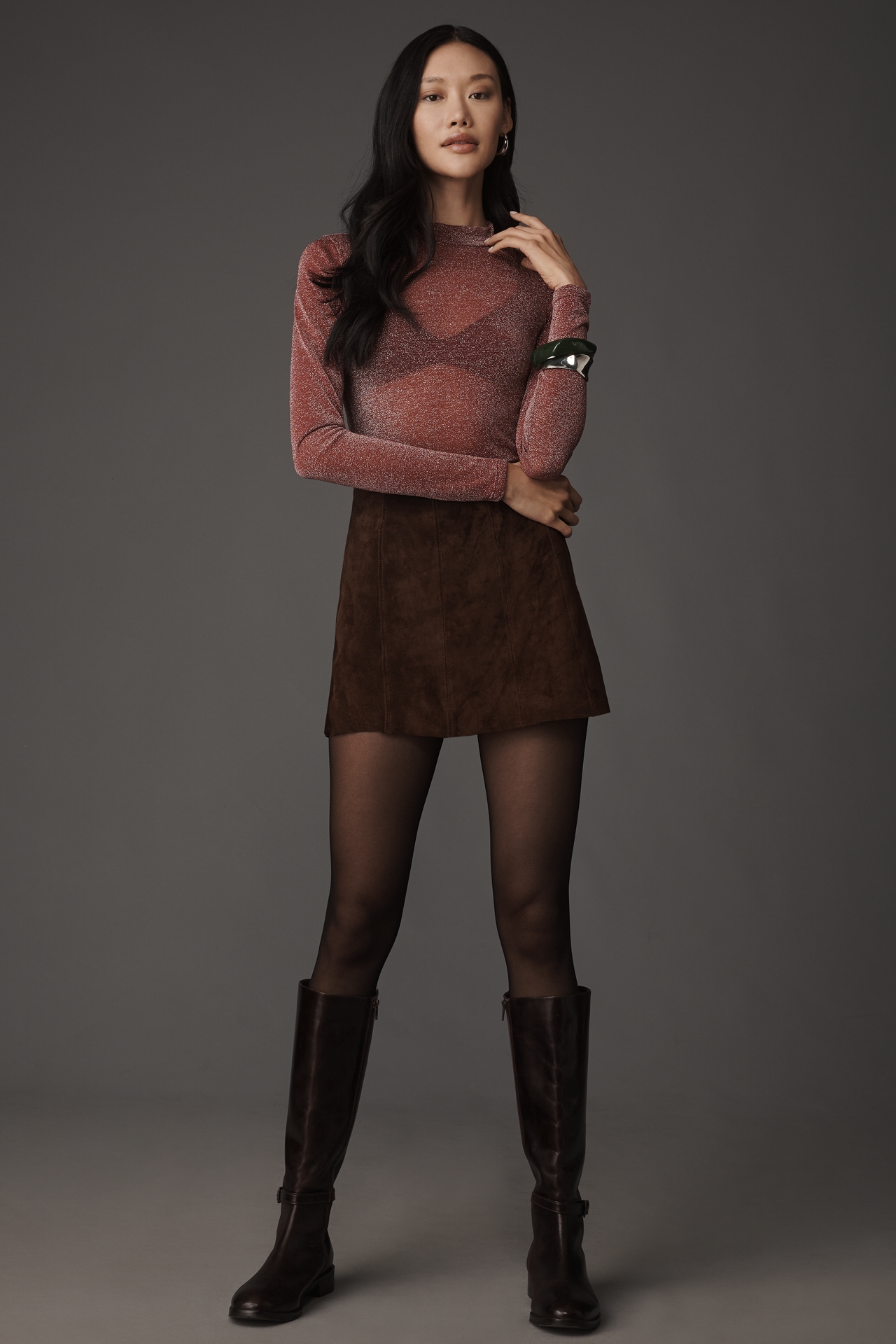 LSPACE Shimmer Long-Sleeve Mock-Neck Top