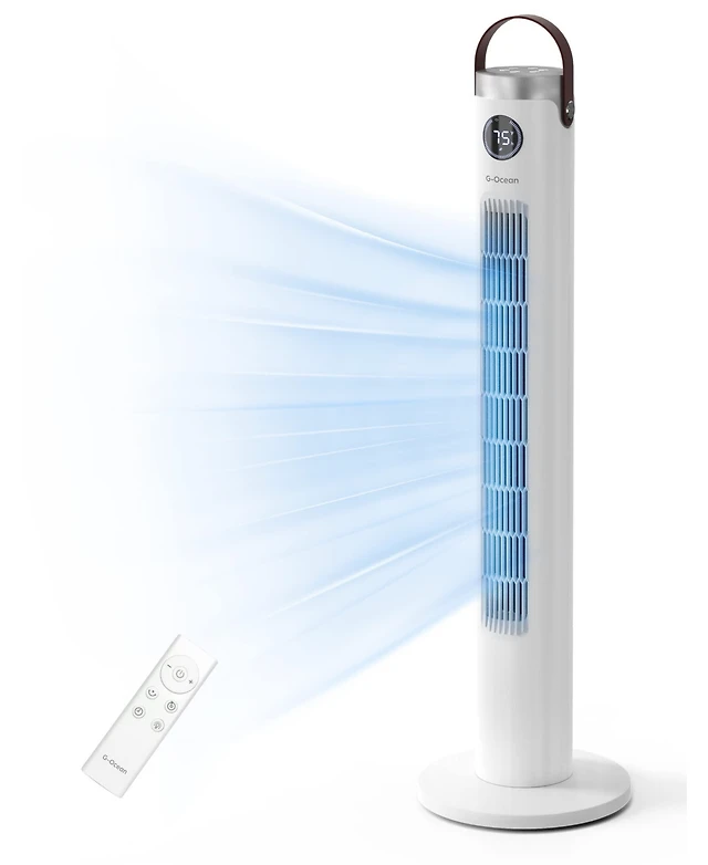 Cowsar Tower Fan Portable Floor Fans 85°Oscillating Fan 36'' Quiet Cooling 12H Timer Remote Control Standing Bladeless Electric 3 Speeds Wind 3 M