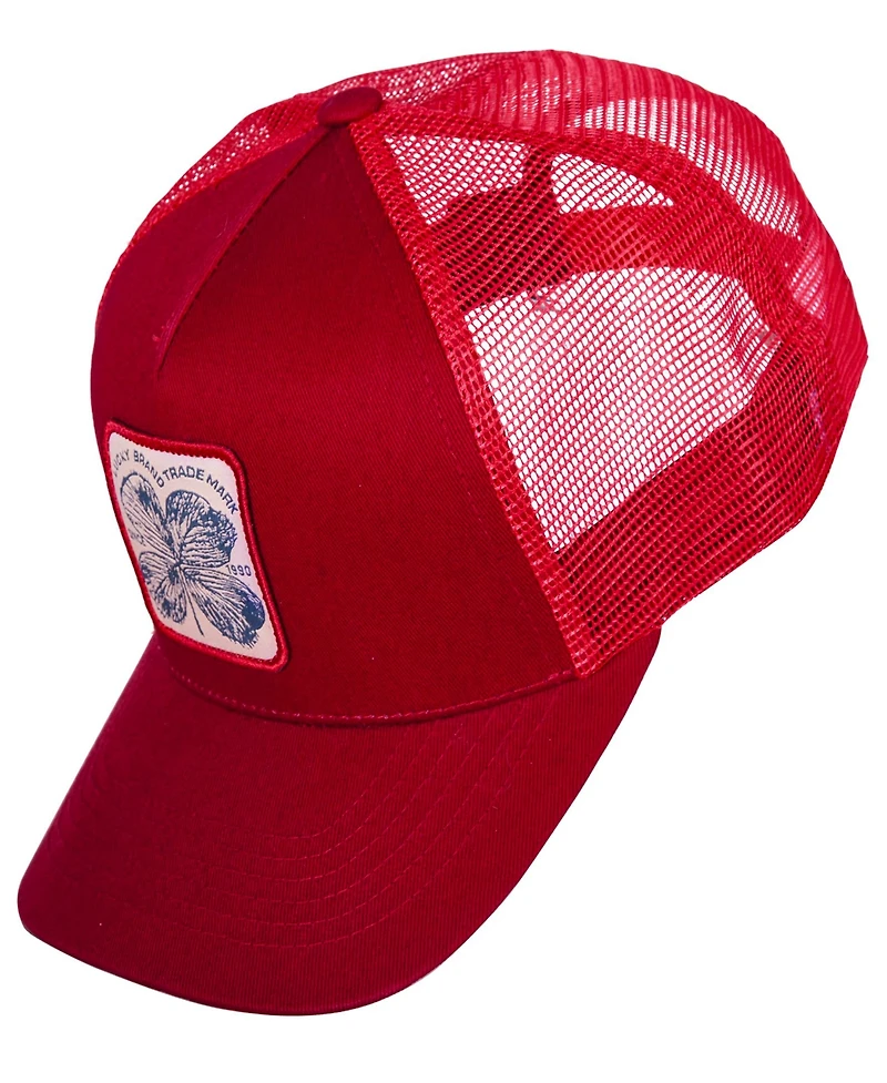 The Lucky Brand clover patch trucker hat - the perfect way to stay stylish and on-trend. This ultra-hip cotton twill trucker hat features an embroidered logo patch that will turn heads.