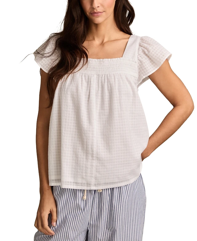 Lucky Brand Women's Cotton Smocked Square-Neck Peasant Top