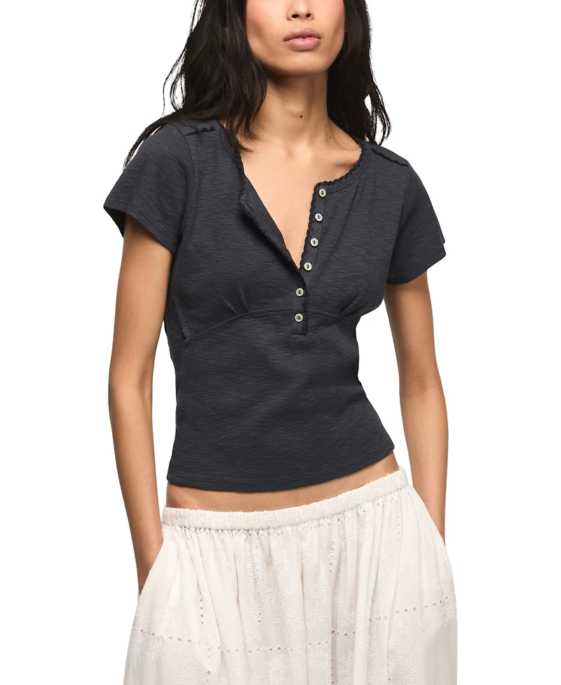 Lucky Brand Women's Crochet Trim Short-Sleeve Henley Top