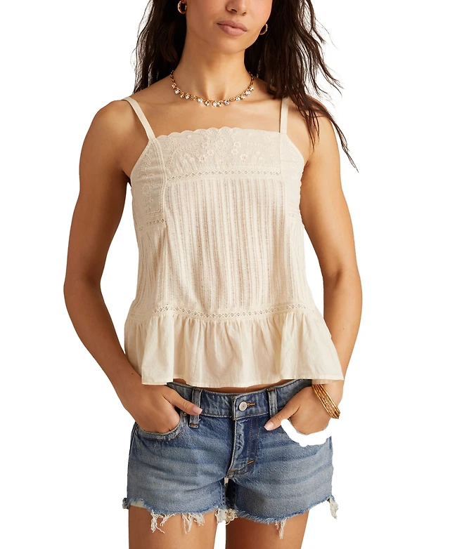 Lucky Brand Women's Embroidered Square-Neck Sleeveless Top