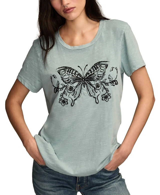 Lucky Brand Women's Embellished Butterfly Classic Crew Neck T-Shirt
