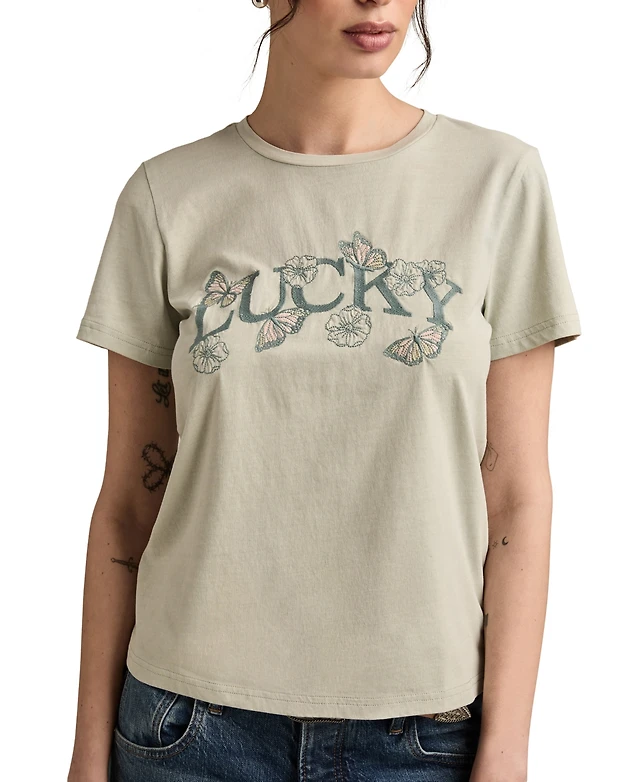 Lucky Brand Women's Lucky Butterfly Cotton Classic Crewneck T-Shirt