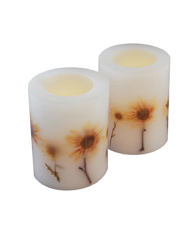 Lumabase Set of 2 Dried Flowers Flickering Led Candle