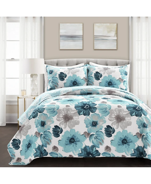 Lush Decor Mirabelle Watercolor Floral Reversible 3 Piece Quilt Set, King