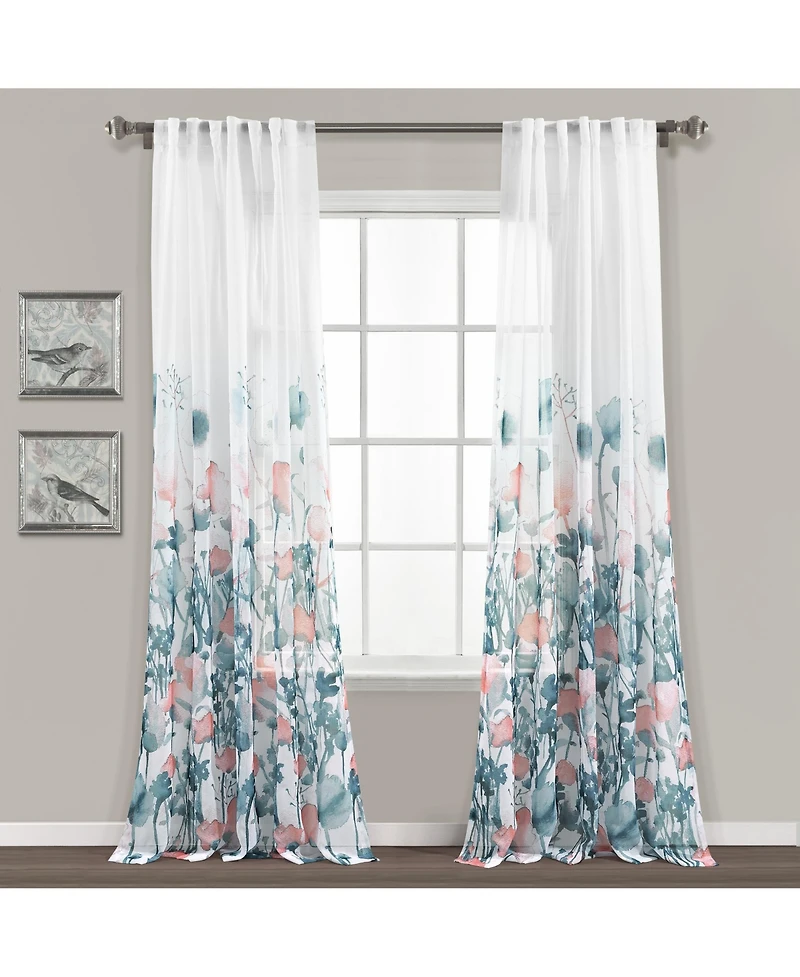 Lush Decor Zuri Flora Sheer Window Curtain Panels Pair 38"W x 84"L Blue & Coral - Sheer Curtains for Living Room