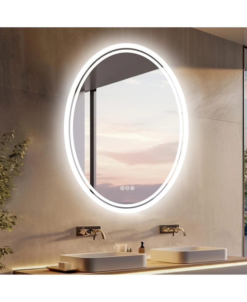 Luvodi Oval Wall Mounted Dimmable 3 Colors Vanity Mirrors with Anti-Fog Smart Touch Switch