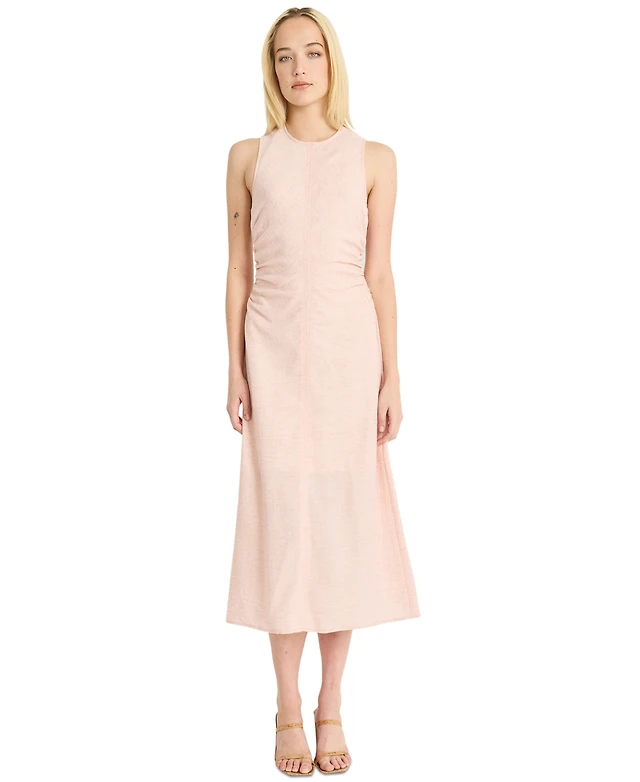 Luxely Women's Ruched Round-Neck Sleeveless Midi Dress