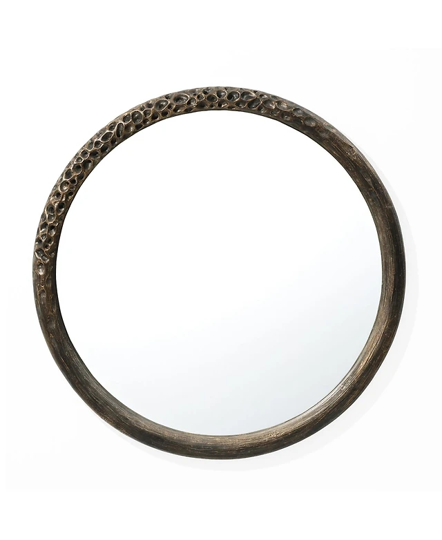 LuxenHome 32-Inch Round Brown Crater MgO Frame Wall Mirror