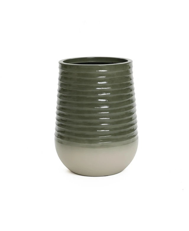 LuxenHome Emerald Ribbed Top with Ivory Bottom 20" Tall Resin Round Planter