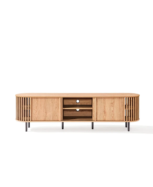 LuxenHome Light Oak Finish Engineered Wood 2-Door and Open Storage 71-Inch Wide Tv Console