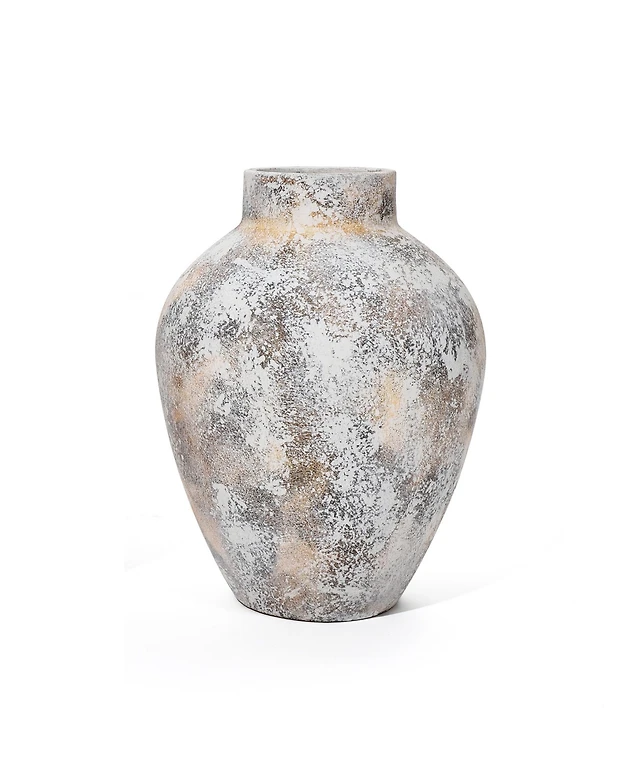 LuxenHome Rustic Off-White with Gray 12.4-Inch Tall Terracotta Urn Vase