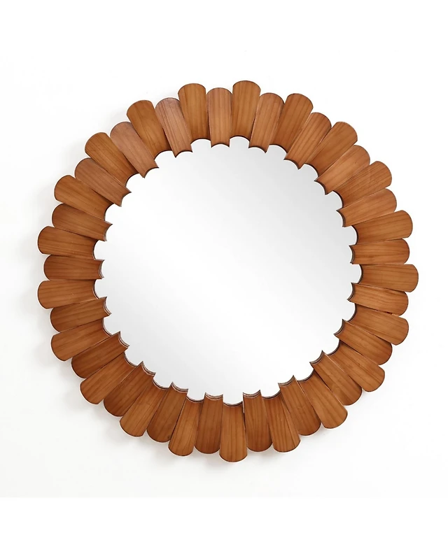 LuxenHome Natural Rubberwood Frame Round Wall Mirror