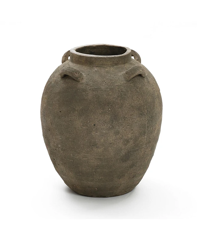 LuxenHome Rustic Brown Terracotta Cauldron 15.4-Inch Tall Vase