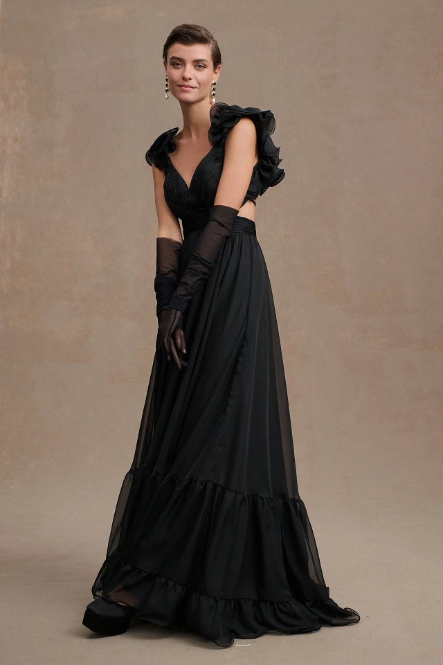 Mac Duggal Women's Ruffle Tiered Cut-Out Chiffon Gown
