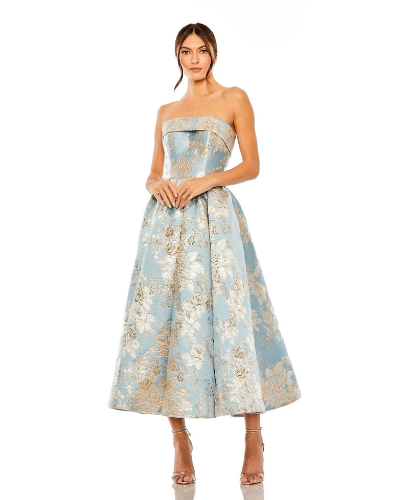 Mac Duggal Petite Strapless Brocade Midi Dress with Pockets in Bloomington, MN