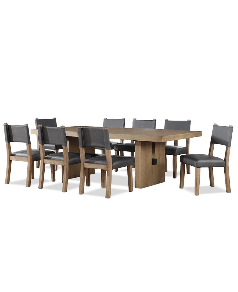 Macai 9-Pc. Wood Dining Table Set (Rectangular Table + 8 Faux Leather Side Chairs)