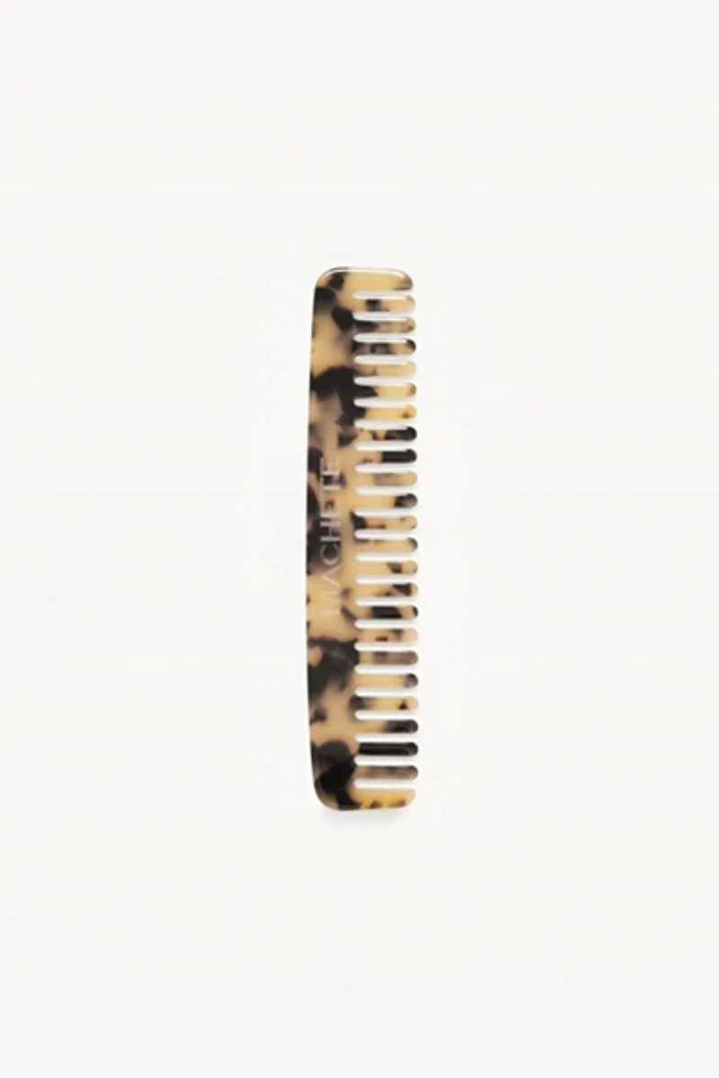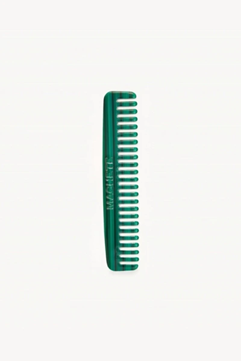 A compact wide-tooth comb sized for travel. Handcrafted from Italian bio-acetate and suitable for all hair types and textures, including wavy or curly.