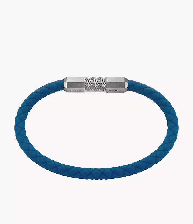 Machine Knurled Texture Navy Silicone Station Bracelet