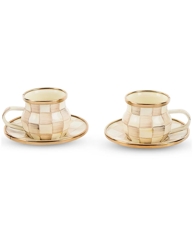 MacKenzie-Childs Mocha Check Espresso Cup & Saucer, Service for 2