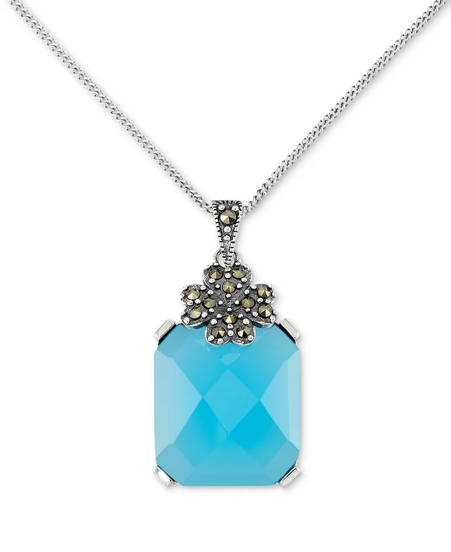 Macy's Agate (10-1/2 ct. t.w.) & Marcasite (1/10 Pendant 18" Necklace Sterling Silver