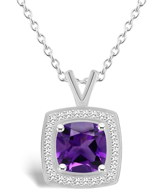 Macy's Women's Amethyst (2-3/4 ct.t.w.) and Diamond Accent Pendant Necklace in Sterling Silver