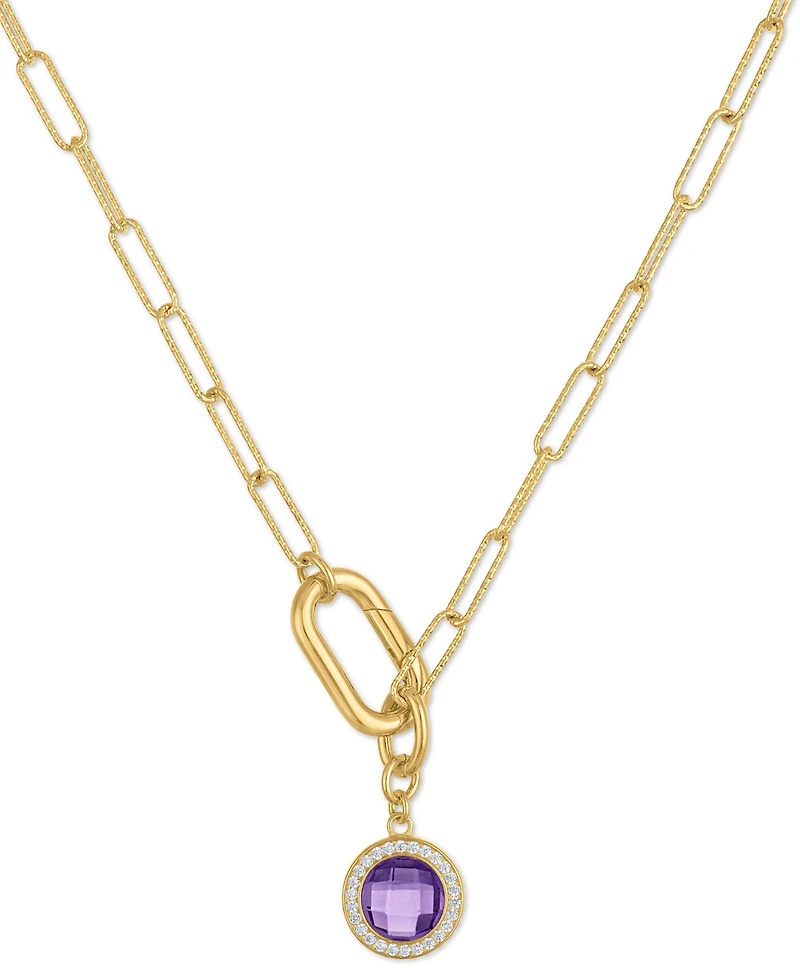 Macy's Amethyst (2 ct. t.w.) and White Topaz (1/5 Carabiner Paperclip Link Necklace 14k Gold Over Sterling Silver