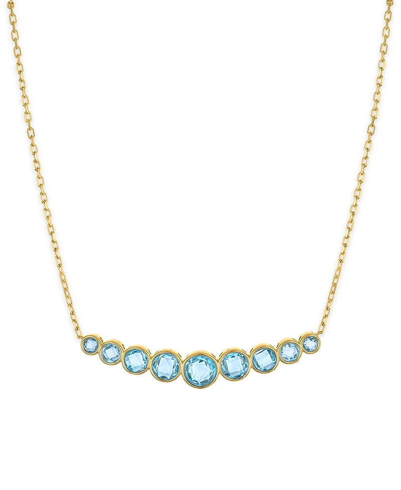 A graceful smiling curve defines this bezel-set necklace from Macy's, showcasing a vibrant arrangement of gemstones. Crafted in 14k yellow gold over sterling silver overlay, it is finished with a cable chain and a lobster clasp for a polished look.