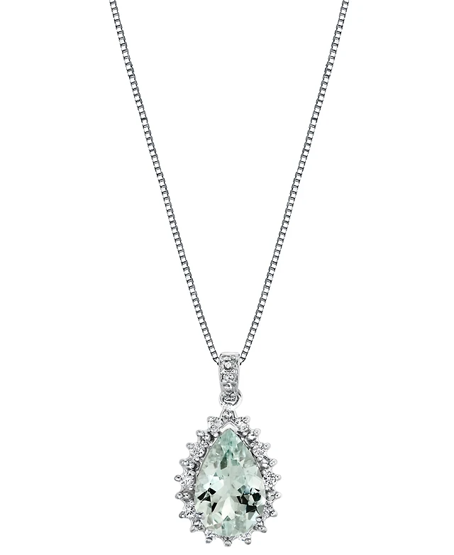 Macy's Aquamarine (1-3/8 Ct. T.w.) and Diamond (1/10 Ct. T.w.) Pendant Necklace in 14K White Gold