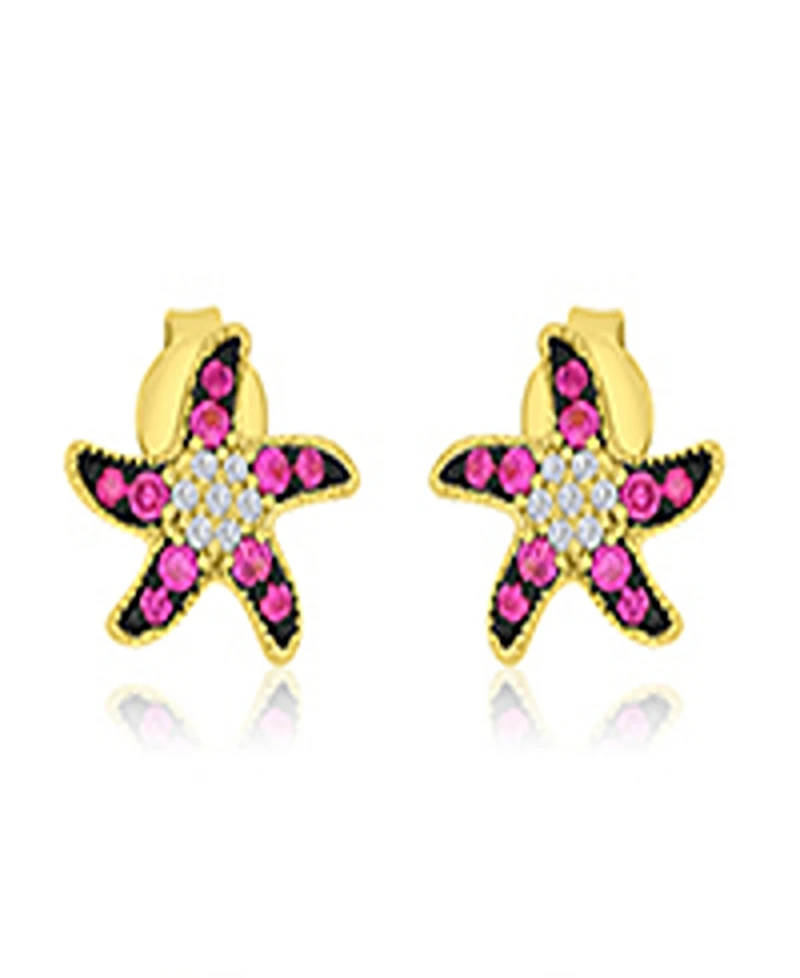 Shimmering with coastal charm, these Macy's stud earrings showcase starfish designs accented with white sapphires and rubies. They are secured with butterfly back closures for comfortable wear.