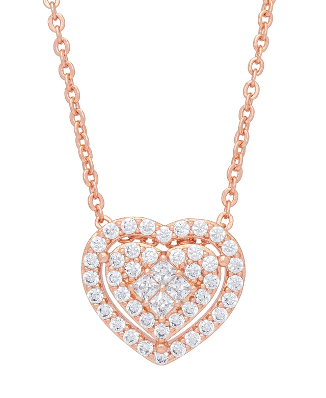 Macy's Cubic Zirconia Heart Necklace (1 3/8 ct. t.w.) in 14k Gold Over Sterling Silver