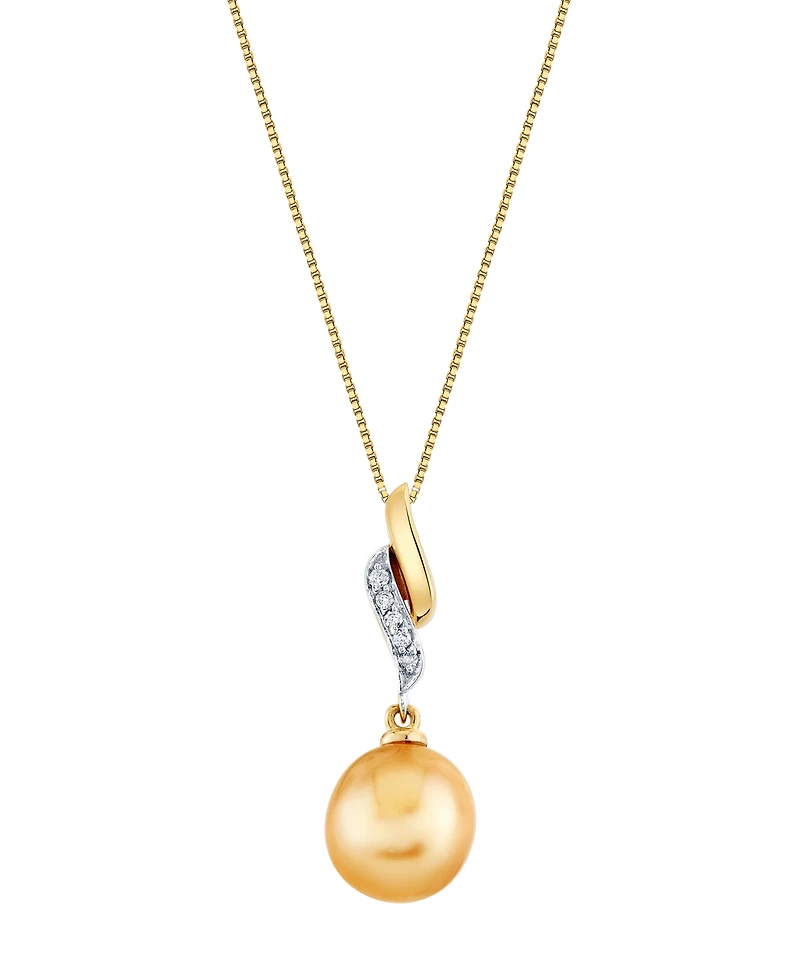 Macy's Cultured Fresh Water Pearl (11mm) & Diamond Accent Pendant Necklace in 10k Yellow Gold in Bloomington, MN