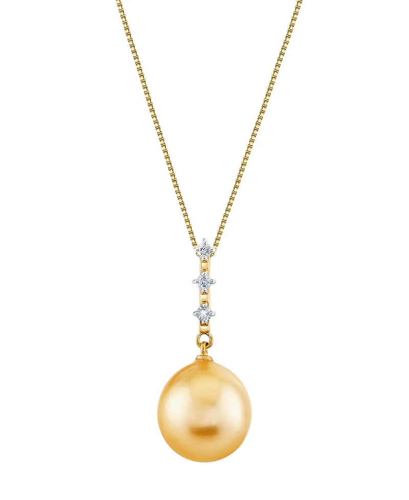 Macy's Cultured Golden South Sea Pearl (11mm) & Diamond Accent Pendant Necklace in 10k Yellow Gold
