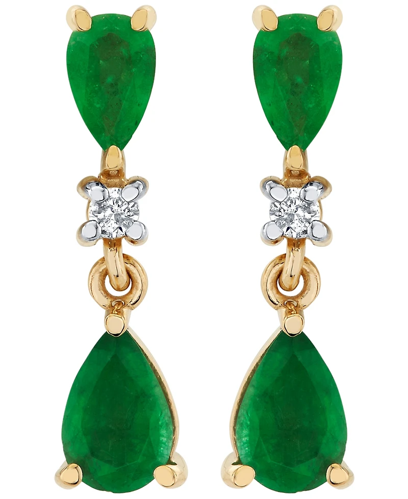 Macy's Emerald (1-1/4 ct. t.w.) and Diamond Accent Drop Earrings in 10k Yellow Gold