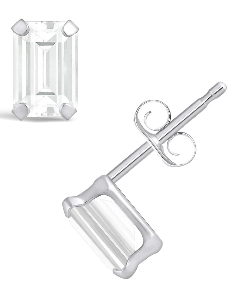 These classic stud earrings feature gorgeous emerald cut gemstones. Available in amethyst, created ruby, garnet, created sapphire, white topaz, aquamarine, citrine , blue topaz and peridot.