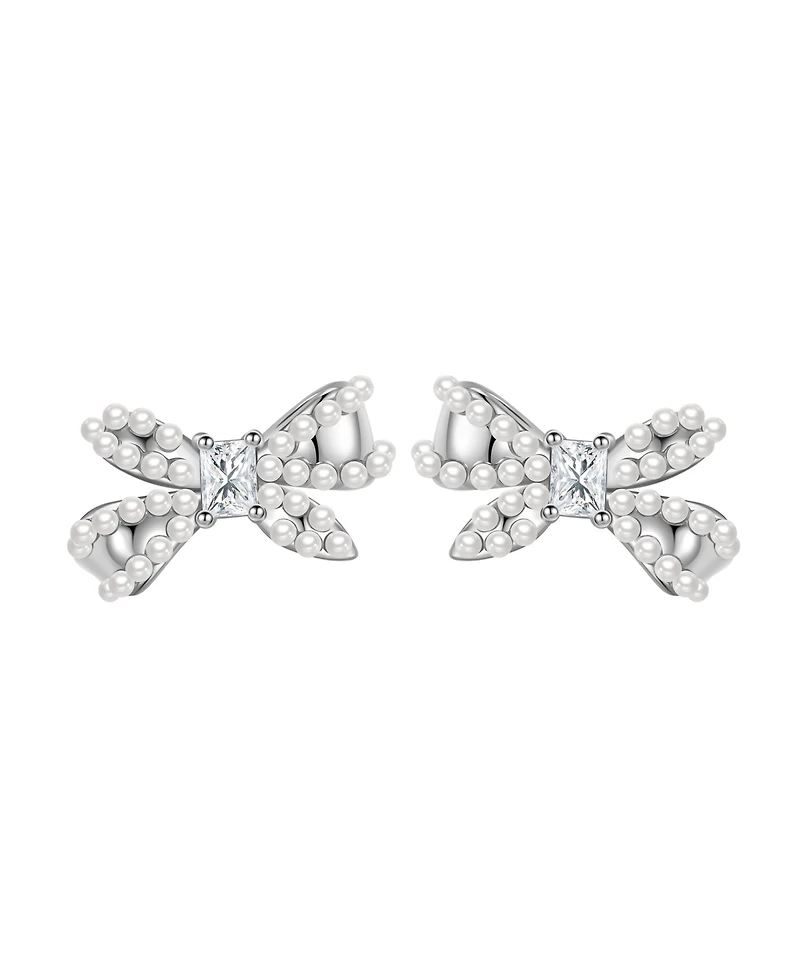 Macy's Imitation Pearl and Cubic Zirconia Bow Stud Earrings in Bloomington, MN