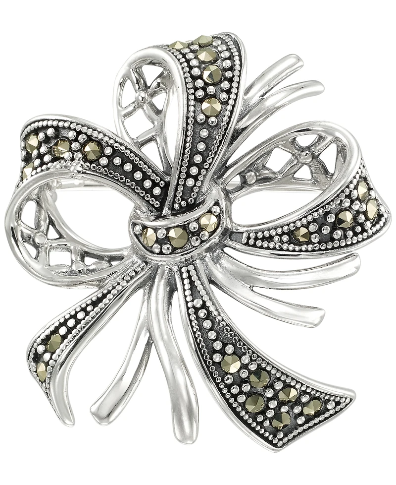 Macy's Marcasite (0.34 ct. t.w.) Bow Brooch Pin in Sterling Silver