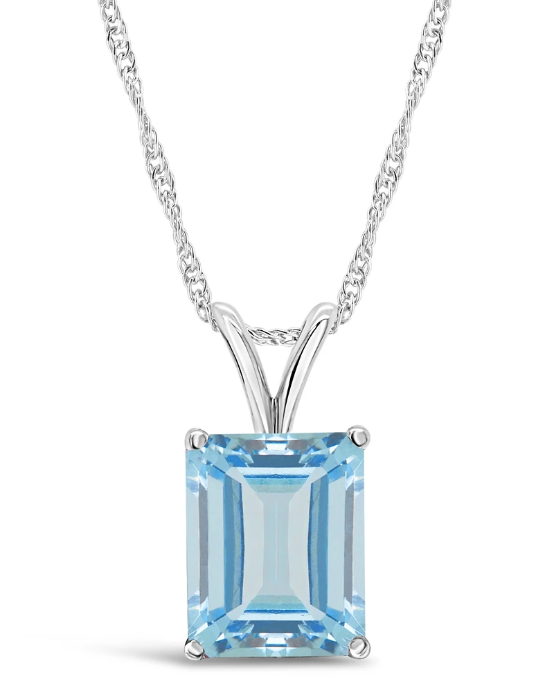 Make a luminous statement with this Macy's pendant necklace featuring an aquamarine stone. The rope chain and spring ring closure offer a secure fit to complement your unique style.